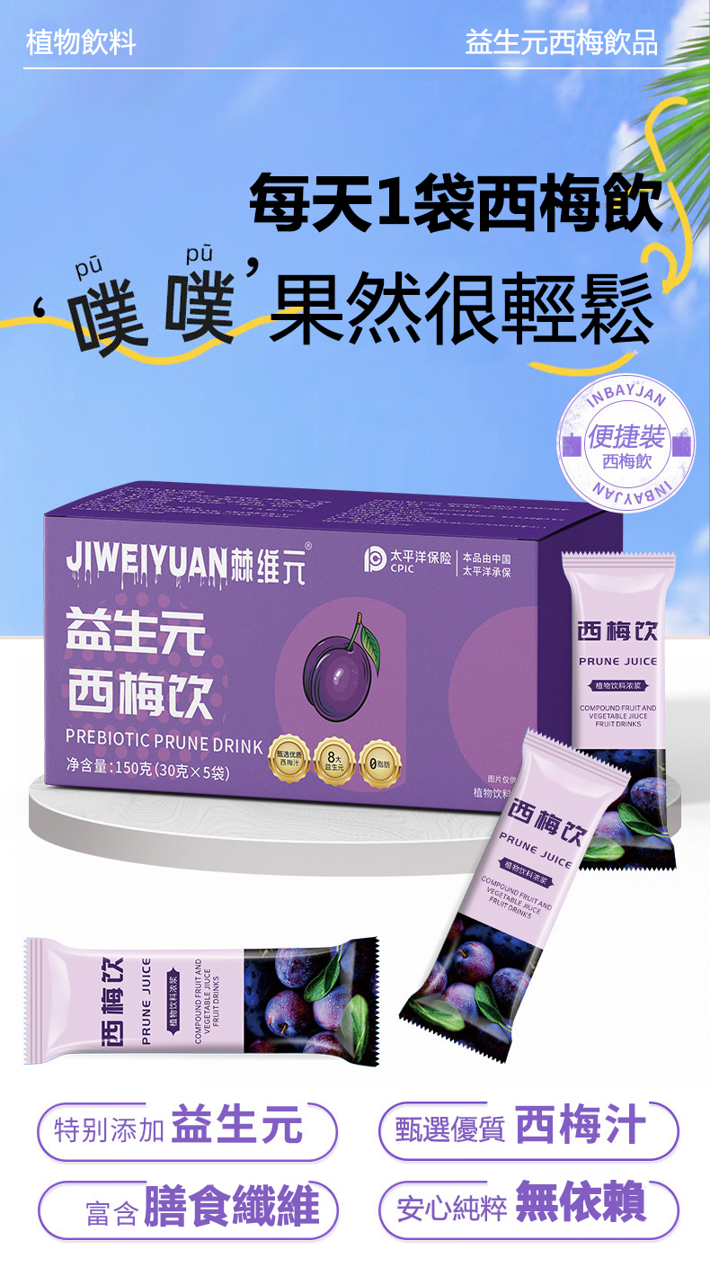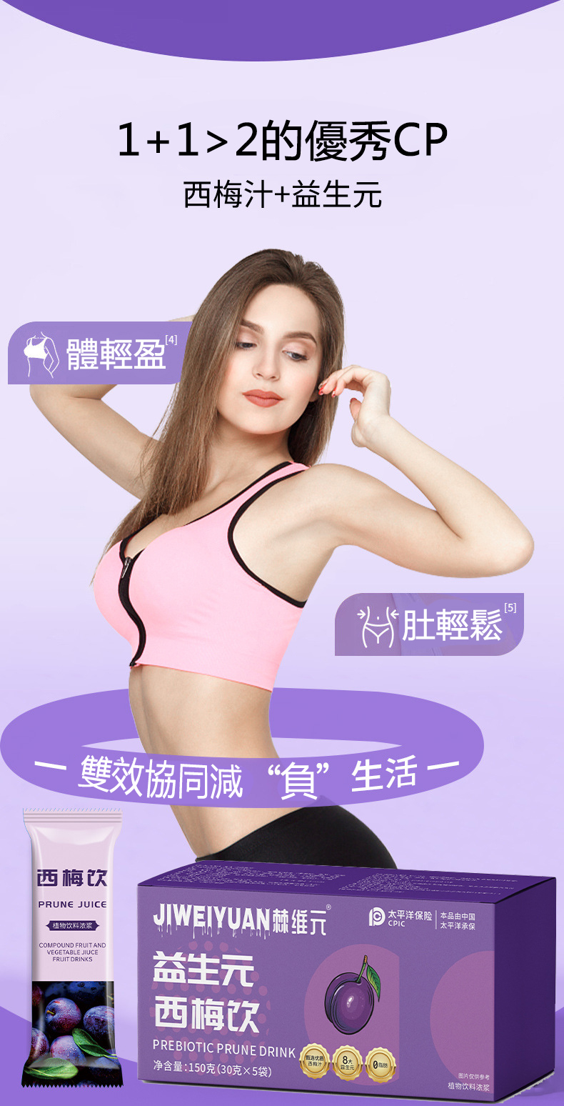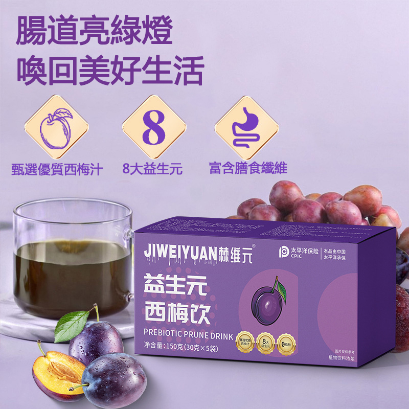 棘維元益生元西梅飲是一種結合了益生元和西梅的大餐救星膳食纖維果蔬酵素飲的酵素瘦身飲品,天然植物,健康美味,不用節食,不用運動,每天一杯,有效的酵素減肥產品推薦。西梅飲含有豐富的營養成分,排出體內油脂,糖分和毒素,讓你輕鬆掉秤。